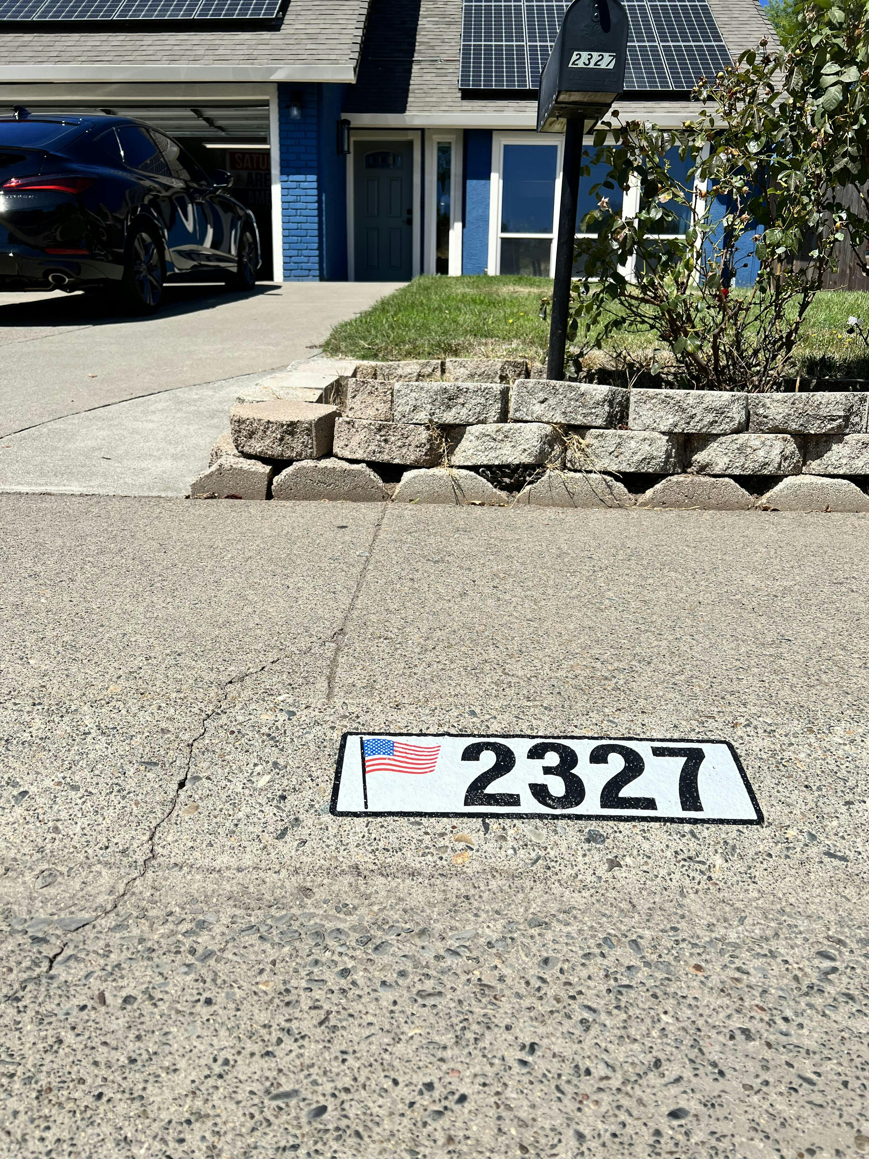 Show your patriotism with the American Flag Curb Number, designed to clearly display your address while adding a distinctive, patriotic touch to your home exterior. Crafted for durability and visibility, this curb number combines functionality with a bold American flag design, ensuring your address stands out for visitors and emergency services alike. Ideal for enhancing curb appeal with a professional and respectful nod to national pride.